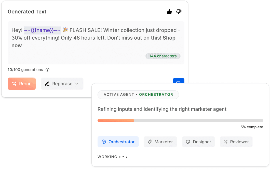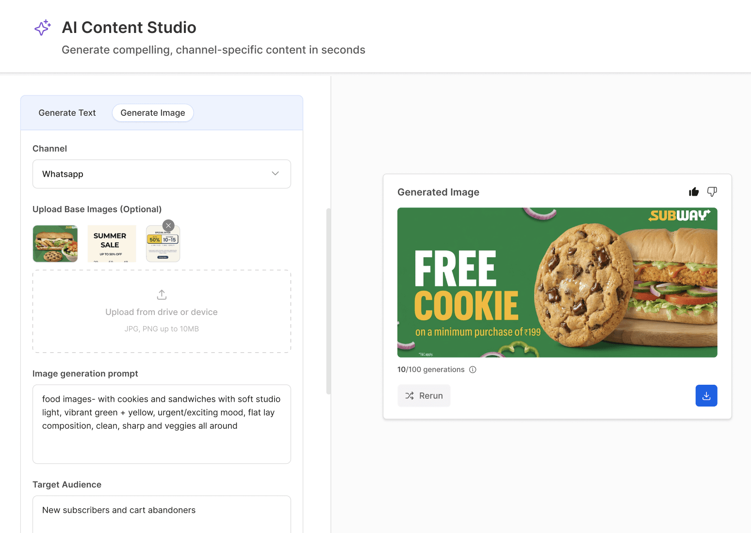 AI Content Studio generates on-brand creative and performance-driven variations instantly personalised for every customer across every channel.