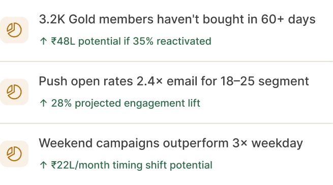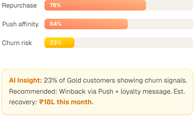 Predicts who will buy or churn & triggers campaigns to convert or win them back.