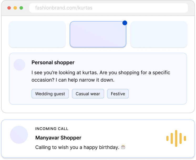 Engages customers in the moment — on your website, WhatsApp, or a call.