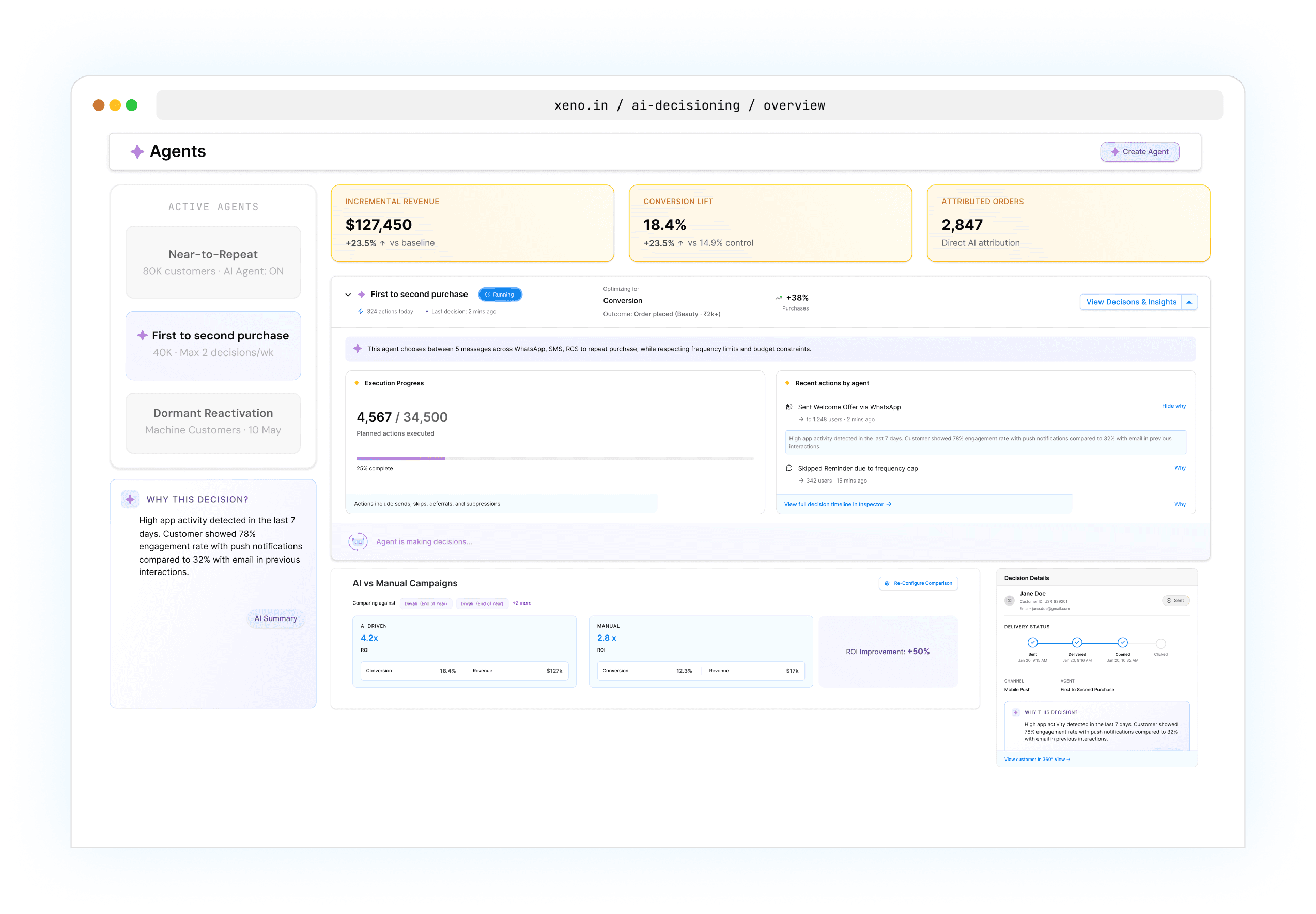 Get a personalized walkthrough using your own use cases and watch how Xeno’s agents identify opportunities, make decisions, and take action in real time.